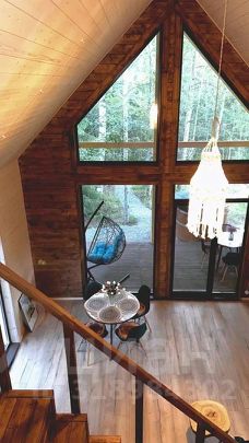 - 1 спальня с большой кроватью и панорамным видом на лес