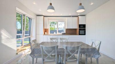 в кухне имеется: варочная поверхность, микроволновая печь, посудомоечная машина,холодильник, духовой шкаф ,чайник, тостер, капсульная кофемашина и полный набор посуды и приборов