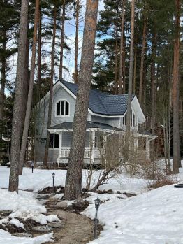 Дом расположен в небольшом закрытом, охраняемом СНТ на 26 домовладений, на участке с природным лесным ландшафтом (сосны, ели, черничник, грибы).