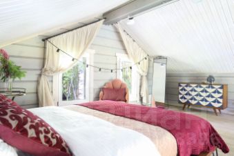 Максимальная вместимость 7 человек. В доме 3 спальни (две закрытых на первом этаже и одна открытая на втором) с двуспальными кроватями. В гостиной находится одноместный диван, на котором может разместится ребенок или некрупный взрослый. Дом максимально комфортный для проживания с детьми или спокойной дружной компанией.