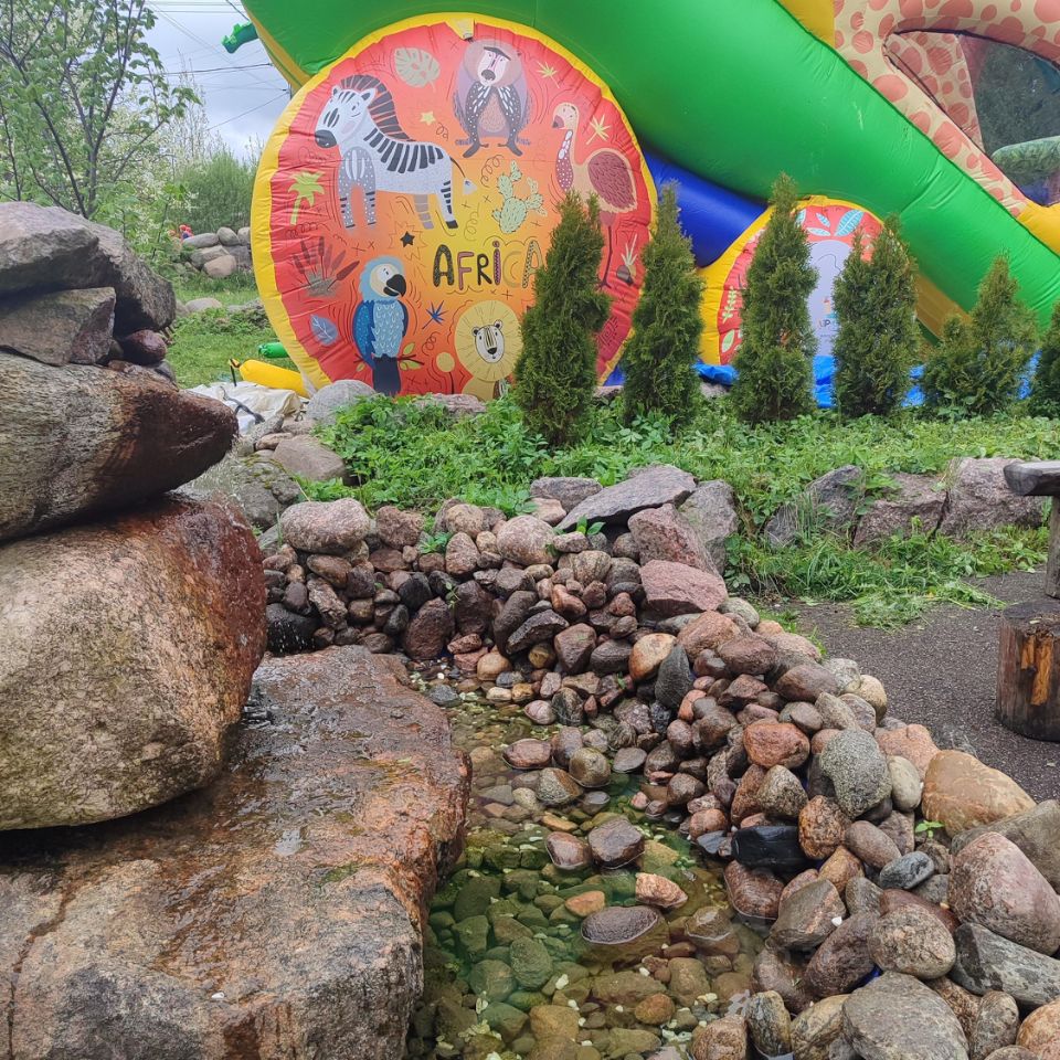 Все кровати ручной работы из массива. На территории находится полноценная детская площадка.