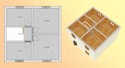 • Удобная планировка дома: 4 спальни, просторная кухня-гостиная, прихожая и санузел.
