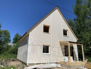 Дом уже построен и готов к проживанию: выполнена отделка внутри и снаружи, подключены коммуникации: электричество, водоснабжение, канализация. В доме установлены светильники, розетки; выполнена система отопления; имеется горячая и холодная вода, канализация; в санузле установлена сантехника.