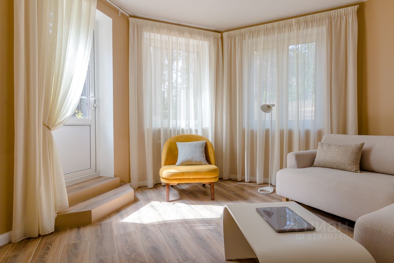 В доме произведён высококачественный ремонт и сдаётся впервые, дом полностью оборудован всем необходимым для круглогодичного проживания. На первом этаже дома кухня-гостиная площадью 40 метров, один санузел. Этот этаж предназначен для сбора всей семьи, приёма гостей.
