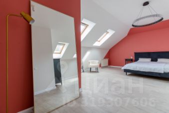 На втором этаже три изолированных спальни, кабинет, и один просторный санузел. Мансардный этаж представляет собой две спальные комнаты совмещенный санузел, гардеробная, постирочная. Цокольный этаж оснащён котельной и индивидуальным гаражом с автоматическими воротами Alutech. На участке более 30 взрослых деревьев.