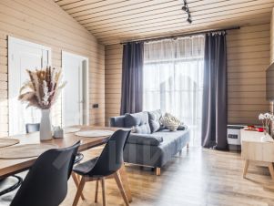 - в кухне-гостиной располагается удобный диван-кровать, телевизор со Smart-TV, wi-fi, Алиса, настольные игры, приставка Денди, у нас вам точно будет не скучно.