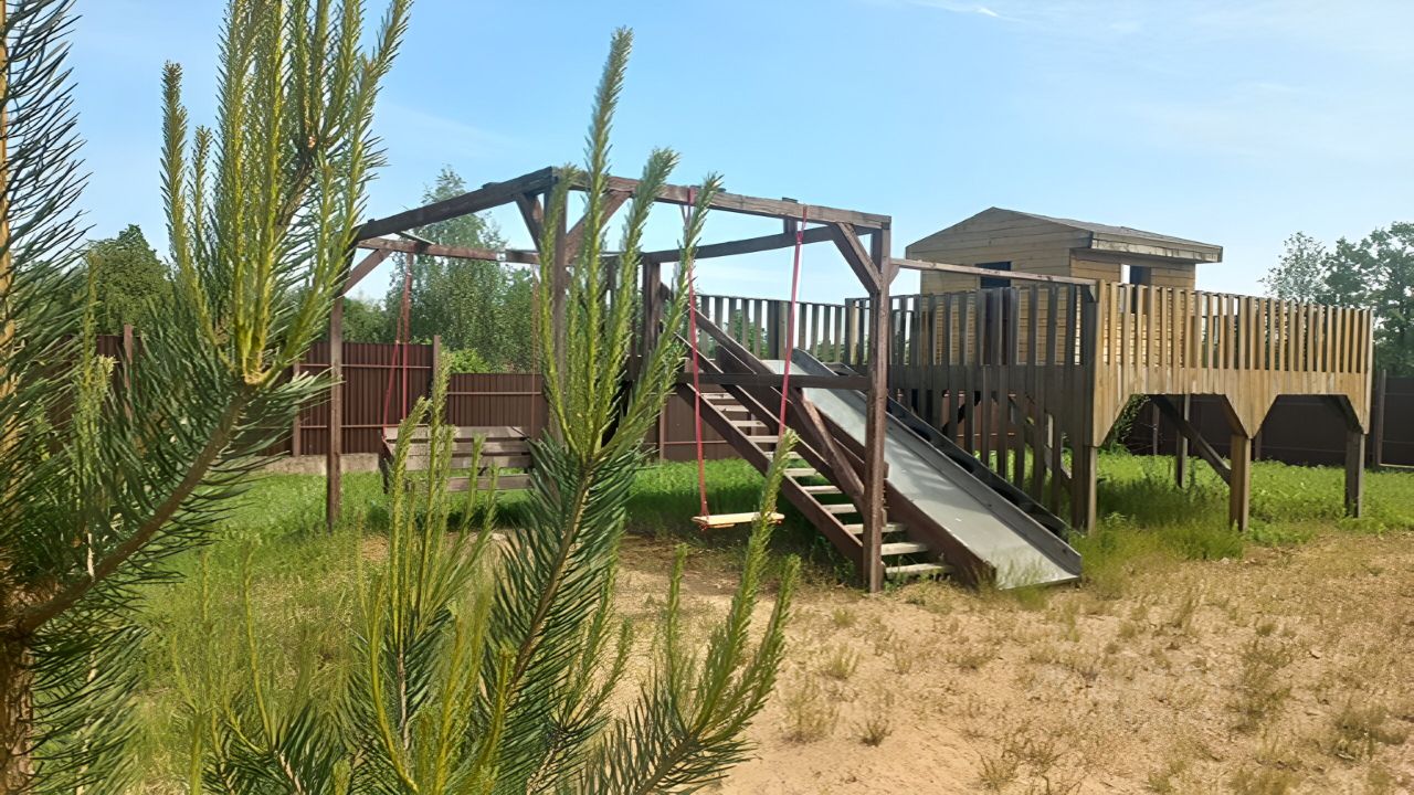 На улице обустроена детская площадка, беседка, крытое парковочное место для двух машин. Практически могут припарковаться 4 машины.