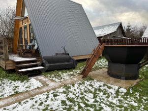 также на территории есть дровяная баня из которой очень удобно можно окунуться в бассейн.
