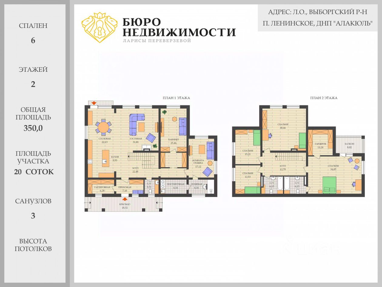 6 уютных спален (2 на первом этаже, 4 на втором);