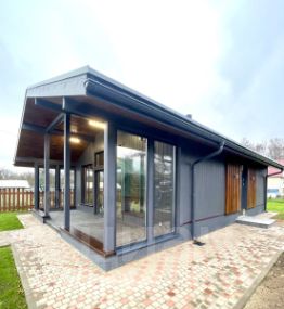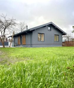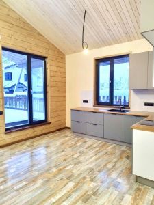 Дом новый, очень светлый и теплый. Проведены все коммуникации. Электричество 15 кВт. Септик "Астра" рассчитан на большую семью. Очень удобная планировка: две уютные спальни, большой гардеробный шкаф в прихожей, и просторная кухня-гостиная с современным камином. Установлена абсолютно новая кухонная мебель и бытовая техника. Всю необходимую мебель для комнат мы готовы приобрести для вас, по согласованию, в самые кротчайшие сроки.