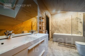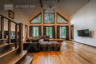 Пять спален с двуспальными кроватями. Огромная гостиная со вторым светом и панорамными окнами. Современная кухня с обеденной зоной и выходом на террасу. Теннисная. Комната отдыха. Три санузла. Три гардеробные. Постирочная. Баня на дровах.