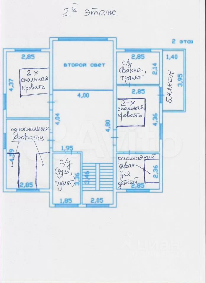 4 двуспальных кровати, 2 односпальных, 2 двуспальных диванов.