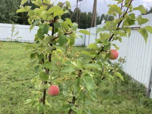 Помимо парковки, на участке газон (регулярно стрижется) и немного плодовых деревьев.