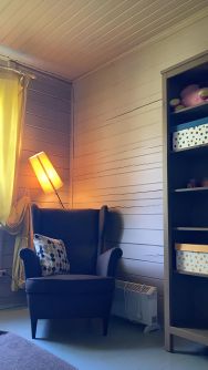 В доме находятся кухня, большая гостиная, комната для детей/ гостей, спальня, библиотека. А также открытая веранда (можно посидеть в кресле ;)