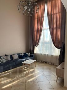 На первом этаже расположены: кухня-столовая 32 м2, гостиная 52 м2, гостевая спальня 33 м2 со своим с/у 11 м2 и отдельным выходом на террасу, кабинет 16 м2, терраса 10 м2 и самая главная изюминка дома-второй свет с 7-ми метровыми потолками, создается ощущение бесконечного пространства, легкого и воздушного! Настоящим украшением является круглая монолитная лестница, отделанная натуральным деревом с кованными воздушными перилами. На втором этаже расположены: по истине царские мастер-спальни, 48 м2 и 53 м2, каждая из них со своим с/у.
