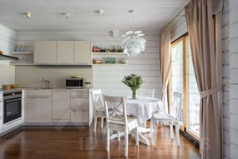 Дом выполнен из экологически чистых материалов - клеенного бруса HONKA, газовый котел обеспечивает тепло в доме в любую погоду.