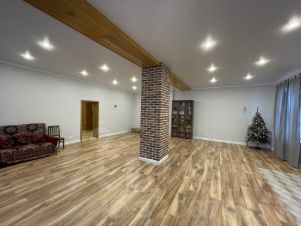 - Светлая комната 64 м² с колонной по центру и выходом на участок.