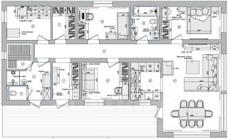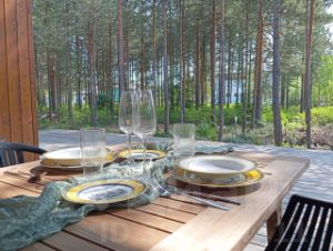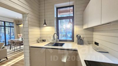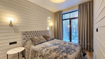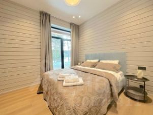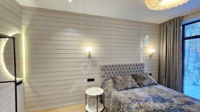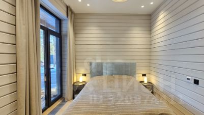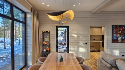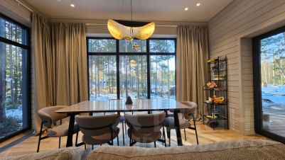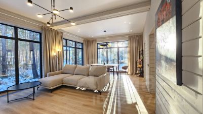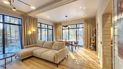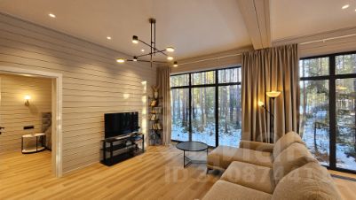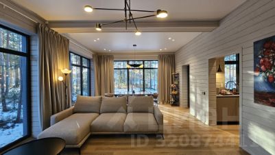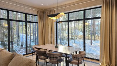 В доме три спальни, просторная гостиная с обеденной зоной, отдельная кухня, два больших санузла, сауна, гардеробная. Все окна в пол. Особая гордость - 100-метровая терраса из лиственницы, оценить всю прелесть которой можно в теплое время года.