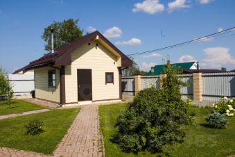 Площадь участка — 12 соток. Аккуратные дорожки из брусчатки, высокий забор из профлиста по всему периметру обеспечивают приватность и безопасность.