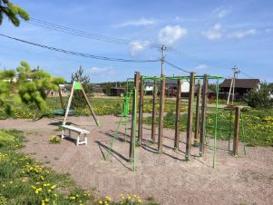 Футбольное поле, волейбольная площадка, тренажёры, зона отдыха