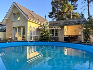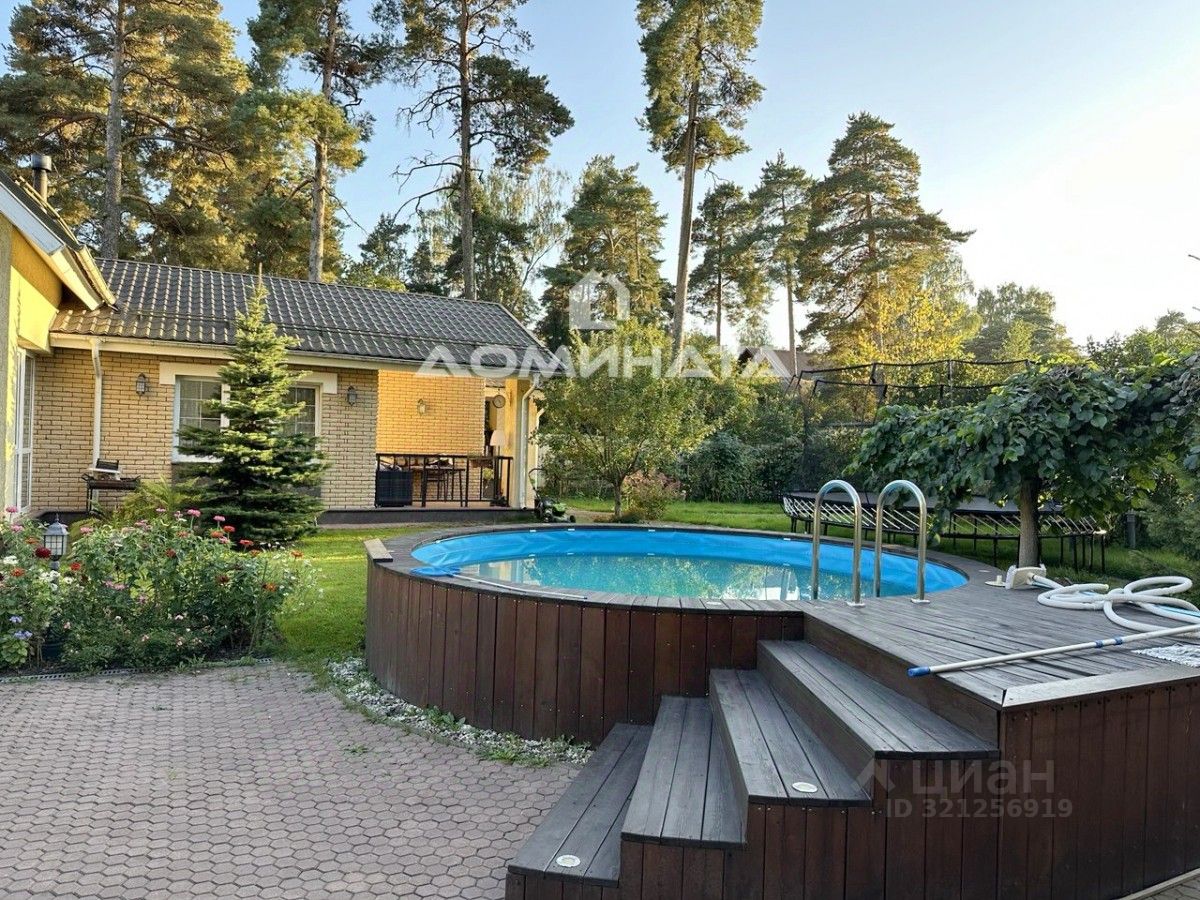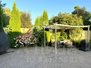 На территории: зона отдыха, бассейн 4,5 м., батут 4,5 м., скамейка-качалка, одно парковочное место (гостевое), хвойные деревья.