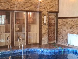 Бассейн тёплый 27- 30 градусов, 5 комнат: 4 отдельные и 1 гостиная 40 метров. Дом.находиться рядом с горнолыжным курортами. Гостям предоставляется кухня с посудомойкой, телевизор со спутниковыми каналами, бесплатный Wi-Fi, финская сауна и бассейн глубиной 1,8 метров. Спальных мест мест: 4 дивана двух спальных и 4 двуспальных кровати.
