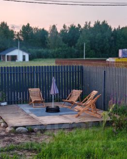 В Вашем распоряжении деревянные кресла релакс у чугунного очага, переносной мангал, детская площадка, баня (в данный момент служит хоз.блоком, ожидает реконструкции), парковка на 3 машины, также машины можно оставить за воротами.