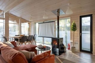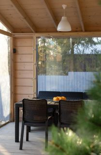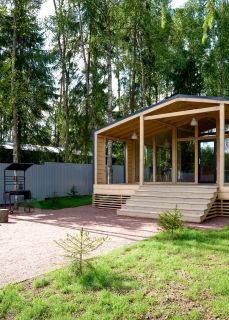 Вы находитесь в одном из наших домов, Дом ладушки с купелью с уютной террасой и прекрасным видом из дома на берёзы и сосны. Дом словно сказочная атмосфера где все наши гости делятся впечатлением про перезагрузку и сладкий сон. Представьте ваш уютный вечер у панорамного окна и любимым кино под звуки костра из камина. Здорово? Приезжайте, мы вас очень ждём.