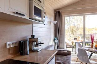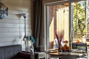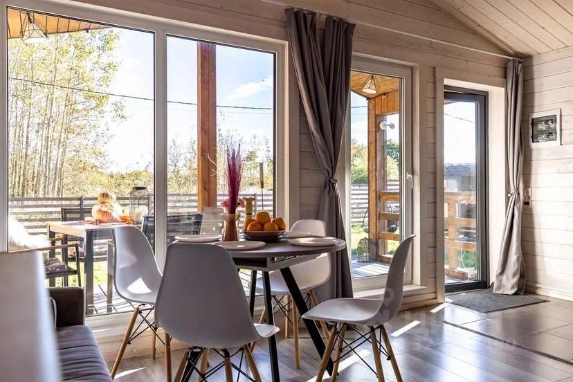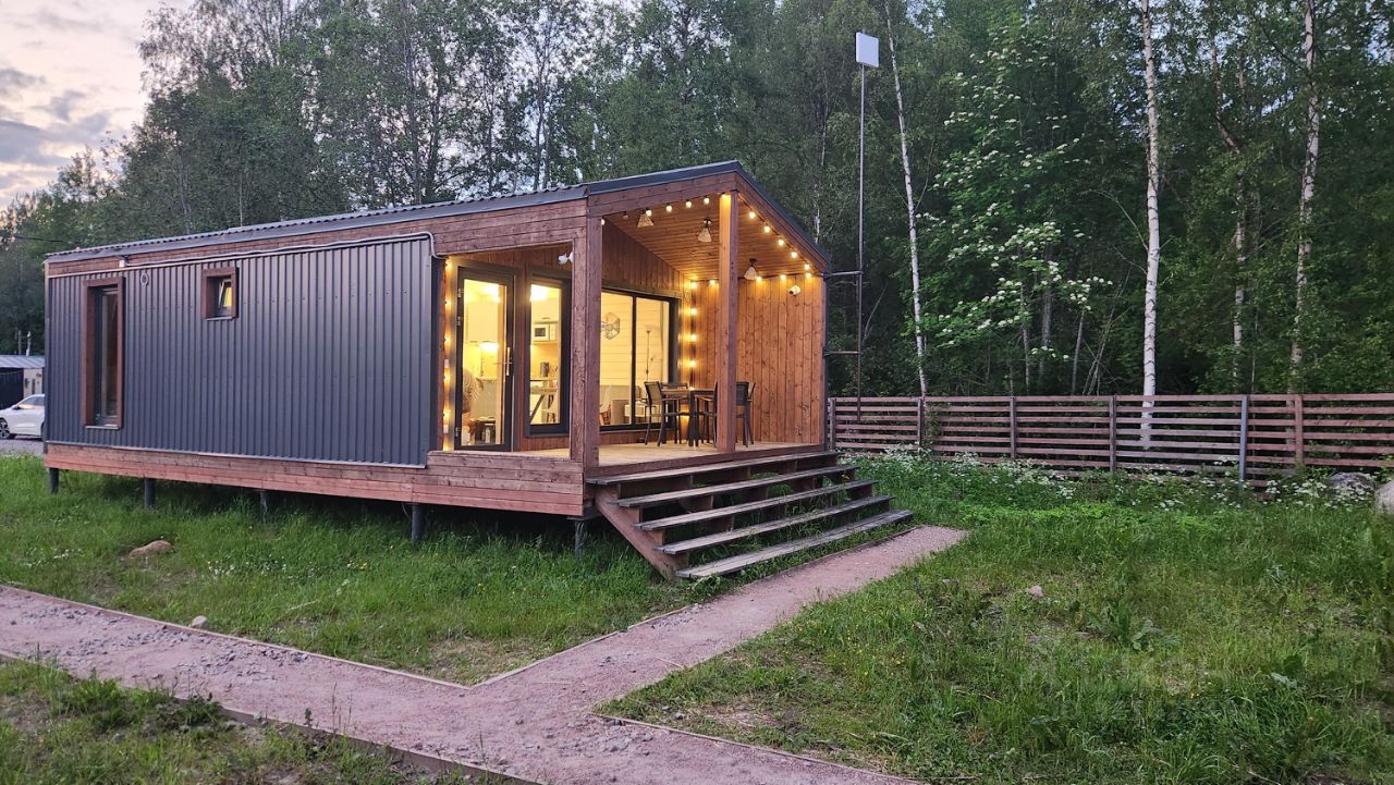 Вы находитесь в одном из наших домов, Дом лукоморье с баней с уютной террасой и прекрасным видом из дома на берёзы и сосны.