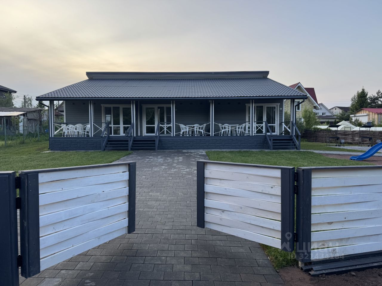 На территории участка: детская игровая площадка, спортивный батут, мангальная зона, парковка.