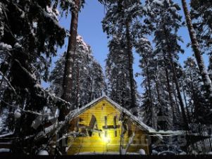 Коттедж из дерева расположен в хвойном массиве недалеко от леса и реки Оредеж.