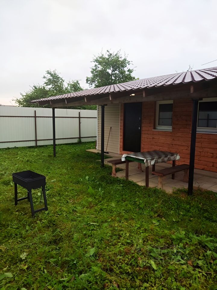На участке к дому примыкает большой навес, под которым расположен стол и две скамейки для 4 человек. Мангал и 10 шампуров есть в наличии и входят в стоимость. Решётки для нет, её не отмыть. Рядом с домом полянка.