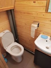 Все коммуникации, как в квартире. Горячая ( бойлер 50 л.) и холодная вода, канализация, обогрев электрическими конвекторами.