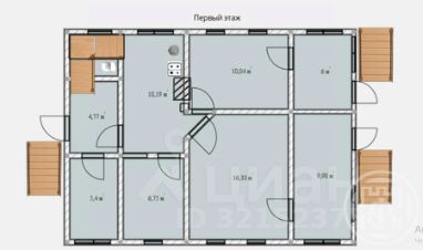 На первом этаже кухня, санузел, кладовая и 3 комнаты. Вся необходимая мебель и техника в наличии.