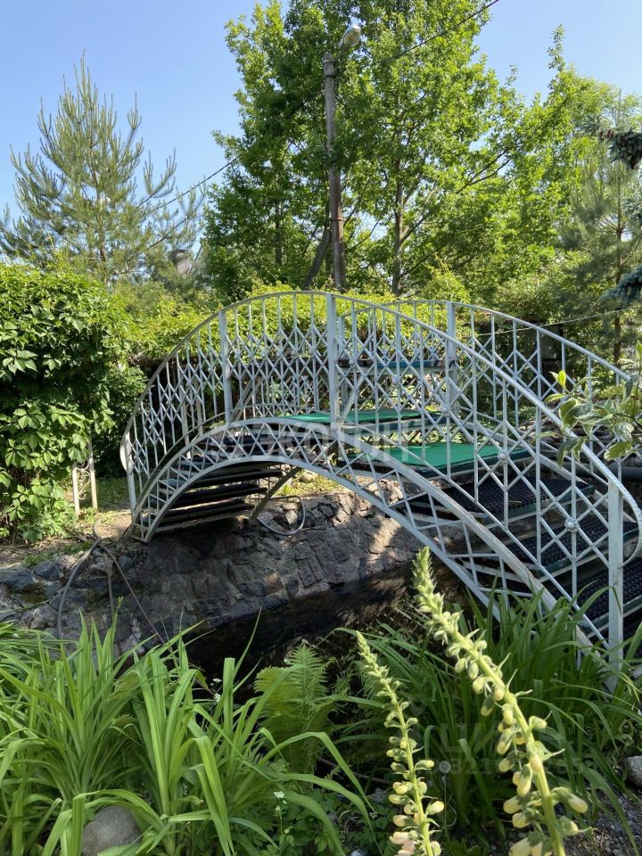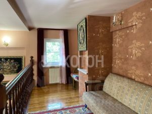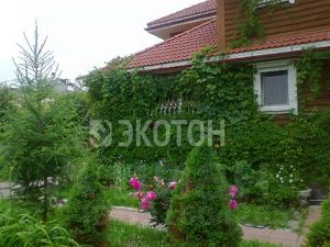 Дом 360 кв.м., Участок 14 соток, огорожен забором, ухоженный, весь утопает в зелени, небольшой пруд с мостиком, садовые качели, много плодовых деревьев, красивые цветы. Парковка на 3 автомобиля. На участке есть еще один отдельный дом, в котором проживает хозяйка. В цокольном этаже коттеджа располагается сауна, комната отдыха, санузел, душевая, есть отдельный вход с улицы. На втором уровне веранда, каминный зал с гобеленами и камином из белого мрамора, кухня, оборудованная всей необходимой бытовой техникой, ванная комната, комната отдыха, спальня. На третьем уровне расположены 3 спальни и санузел с душевой. Дорогая деревянная лестница соединяет гостиную и третий этаж дома. Высокое качество отделки всего дома, пол-паркет. Вода из собственной скважины, газовое отопление. Удобная транспортная развязка  в 3 км КАД.