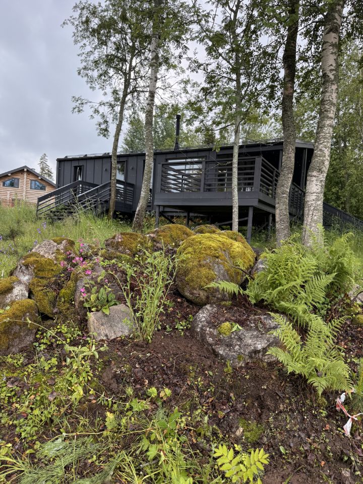 Всего **50 минут**  и вы переноситесь из шумного Петербурга в этот островок спокойствия. Лесные тропинки, купание в озере, рыбалка на рассвете  каждый день наполнен природной терапией. А если захочется городского комфорта  он рядом.