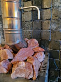 Баня с шунгитовым пано и малиновым кварцитом рядом с Петергофом напротив дворец Бельведер.