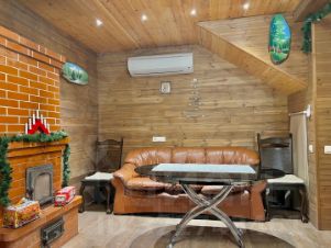 Предусмотрено все для комфортного отдыха на компанию до 12 человек: кухня-гостиная ( полностью оборудованная бытовой техникой; посудомоечная машина, холодильник, встроенная микроволновка, посуда) , русская баня на дровах с купелью и настоящей печкой, мини бассейн, два санузла, три комнаты ( в каждой двухспальная кровать с ортопедическим матрасом ), два TV, стиральная машинка , шкафы - купе, интернет. На всех этажах тёплые полы.