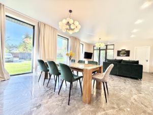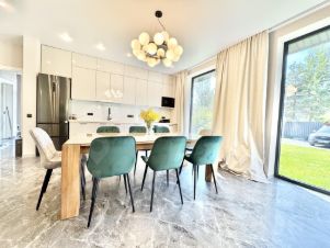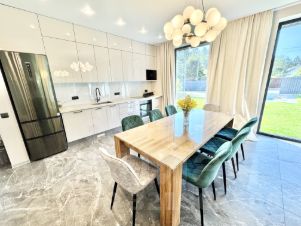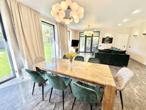 Дом состоит из просторной кухни-гостиной, трех комнат, двух санузлов, сауны и великолепной террасы;