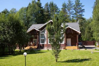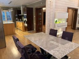 3-57773 Сдаётся 2-х этажный коттедж Хонка (Аятонта) площадью 350 м^2 на лесном участке с ручьем 70 соток. Гостиная в едином пространстве со столовой со вторым светом (высота потолка 8 метров) площадь 60 м^2, три спальни (19,18,16 м^2),