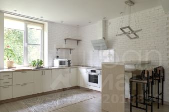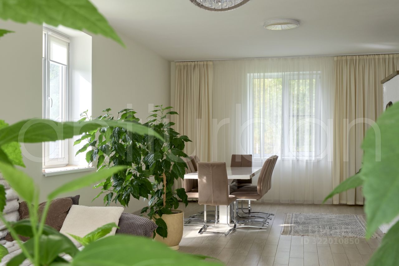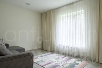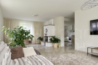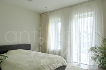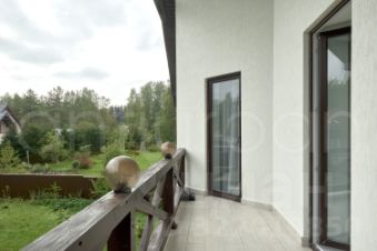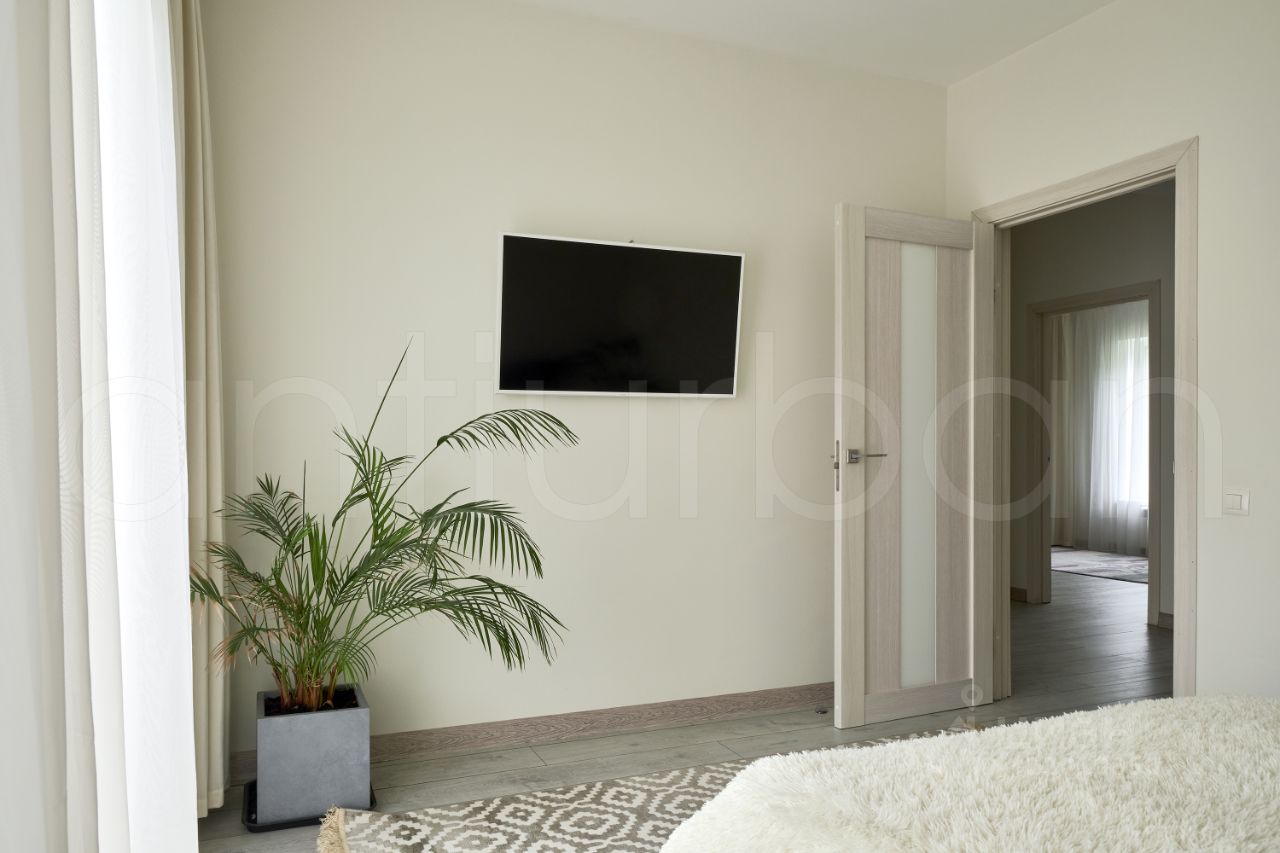 В доме три светлые спальни, два санузла, гардеробная, большая гостиная с дровяным камином, отдельная кухня, спортзал.
