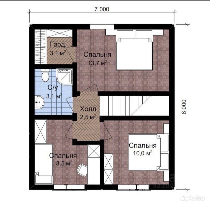 2) Хозяйская спальня (16,7 м²) с собственной гардеробной (3,1 м²) и двухспальной кроватью с ортопедическим матрасом.