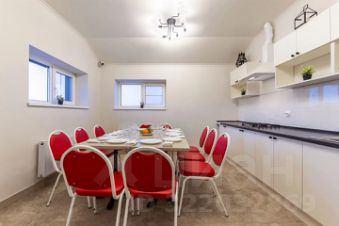 Четырех этажный коттедж 450 м2, 12 спальных комнат.Гостей до 50, спальных мест - 32 Расположен на огороженной территории 20 соток с местами для 6 авто.Первый этаж:- кухня оборудована бытовой техникой и различной посудой;- в гостиной обеденные столы, большой плазменный ТВ (спутниковые каналы), караоке, аудиосистема;- большая спа-зона, ротанговая мебель, гималайская сауна, душевая кабина, санузел, туалетные принадлежности.Второй, Третий этаж:- 6 спальных комнаты- 2 комнаты двойные - в каждом номере телевизор, санузел, душевая кабина, умывальник.- Четвертый этаж:- Большое пространство 100кв.м, высокий потолок, прекрасный вид из окон. - Кухня оборудованная всей необходимой техникой, посудой, мебелью. - Комфортные диваны, столы трансформеры, плазменный телевизор, музыкальной аппаратурой.- На этаже имеются два санузла.Во дворе оборудована зона барбекю с мангалом.Большая остеклённая беседка столом и скамейками.Облагороженная территория: плодовые и хвойные деревья, тротуарная плитка, газон, садовая мебель, качели, романтический мост.В пешей доступности Туттари Парк, конный клуб.В 10 мин. на авто - танковый полигон.В 5 мин. на авто - полигон русское оружие.В стоимость входит:Постельное бельё, комплекты полотенец.Мангал, набор шампуров.Дополнительно оплачивается:Сауна - 1500 руб./часУголь, розжиг для мангала - с собой. Продуктовые магазины и кафе в шаговой доступности.