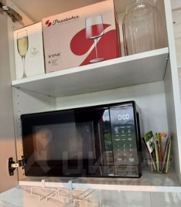 * СВЧ-печь, варочная поверхность, чайник, большой холодильник.