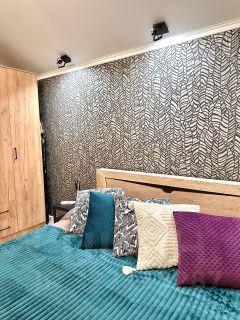 Шторы blackout ,Двуспальная кровать(160/200),Шкаф,Электрические радиаторы,Прикроватные тумбочки,Постельные принадлежности и полотенца,