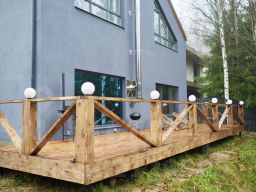Дом находится на краю поселка на берегу реки Охта. Минимум соседей. Тишина и спокойствие.