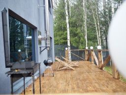 — Великолепная баня на дровах с панорамным окном в лес, душевой зоной и комнатой отдыха с выходом на террасу и зону барбекю.