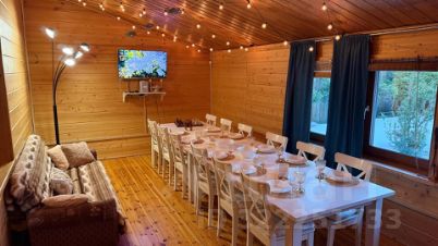 Под.езд удобный,зимой чистят дорогу. Охраняемая территория. Две бани и дрова. Камин. Летом на улице бассейн.