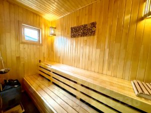 -Сауна оснащена чащей с гималайской солью и аромомаслами