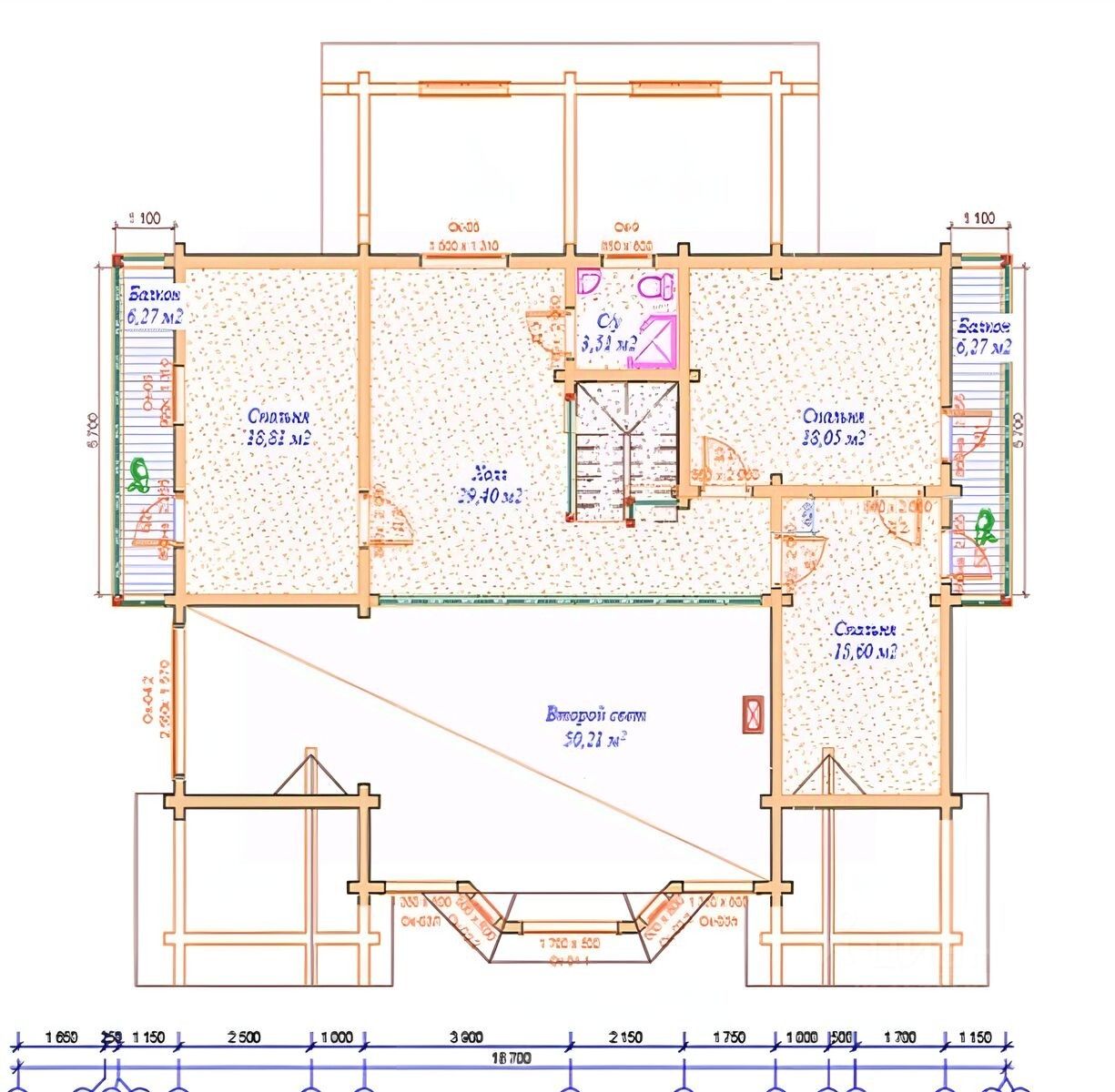 16 м2 и 2-й этаж-6 м2), гардеробная, техническое помещение (15 м2), терасса 40м2.